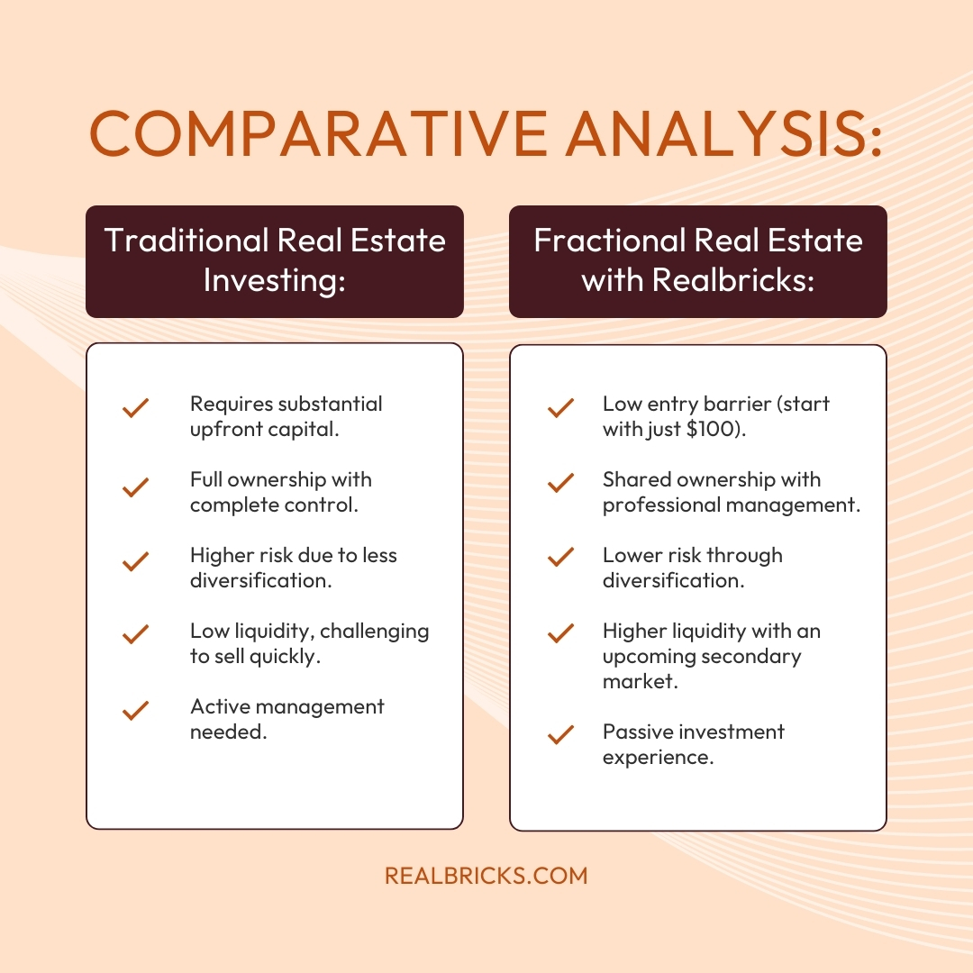 Investing in real estate has long been a cornerstone of wealth building, offering stability and the potential for significant returns. However, the rise of fractional real estate investing, particularly through Realbricks, has introduced new possibilities and opportunities for investors. This comparative analysis will explore the differences between the two models, benefits, and considerations to help you make informed investment decisions.