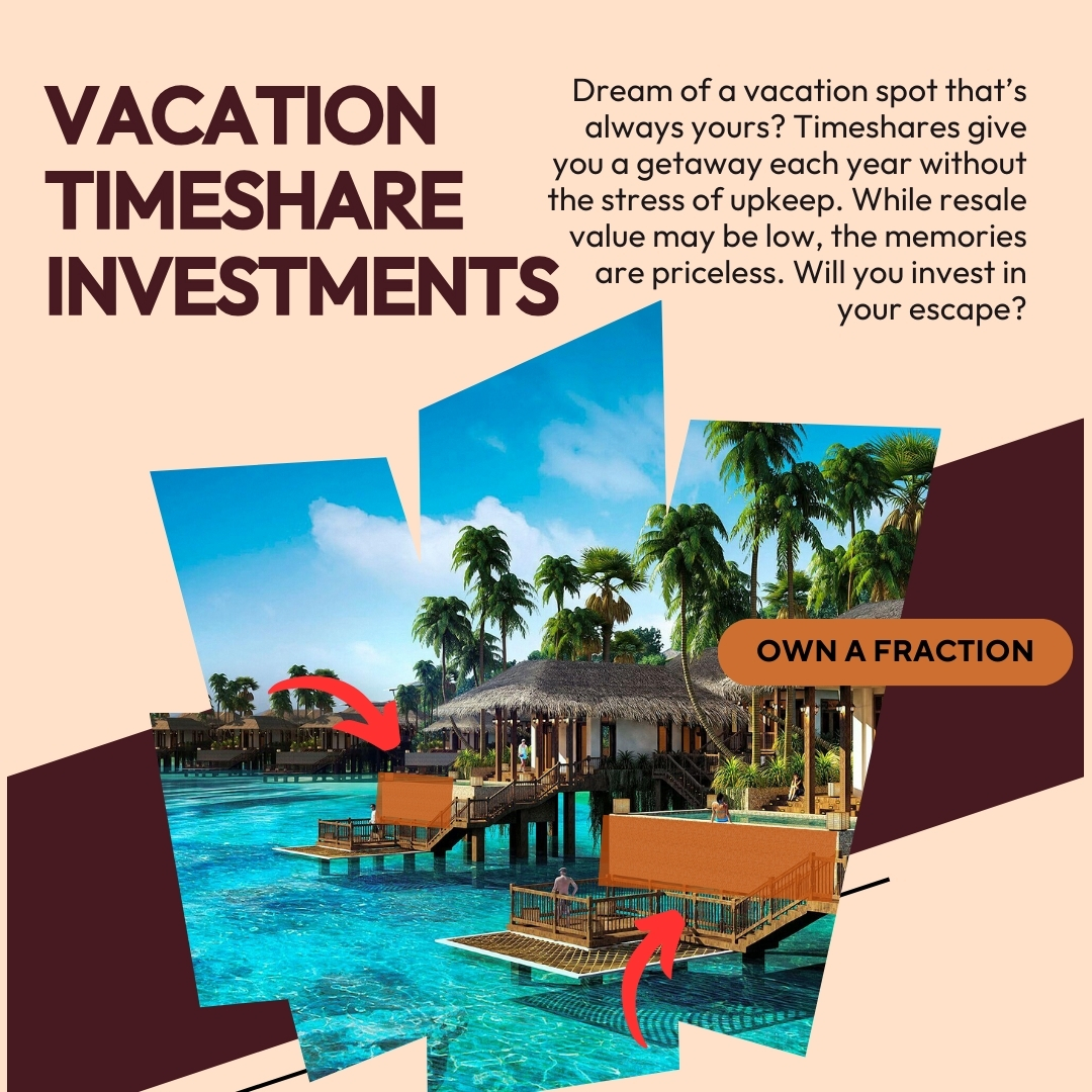 Vacation timeshare investments allow investors to purchase the right to use a vacation property for a set period each year. While timeshares are generally considered a lifestyle investment rather than a financial one, investors can sometimes rent out their allotted time for income. However, the resale value of timeshares is often low, and annual maintenance fees reduce profitability. Timeshares require minimal time commitment, as the management is handled by the timeshare company.