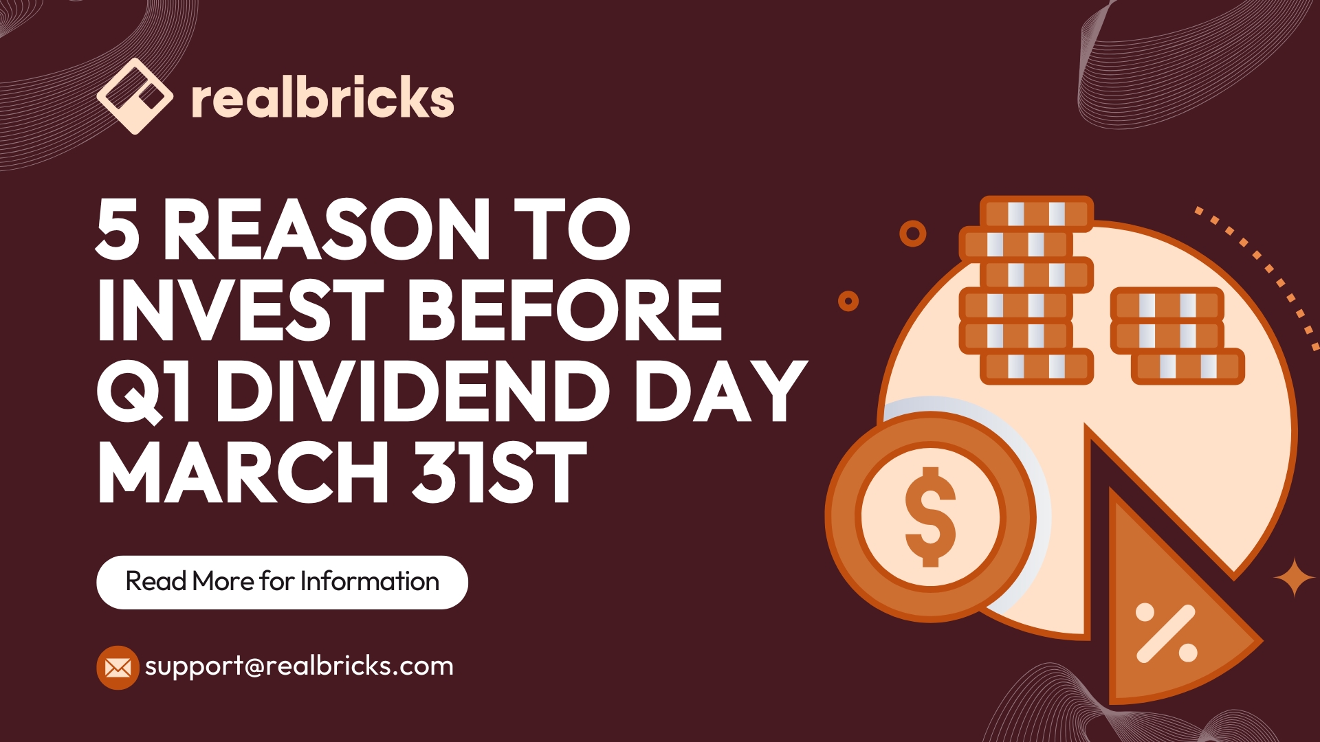 Earn passive income with Realbricks’ Q1 2025 dividends. Invest before March 31st to secure a 2-3% quarterly payout (9% annualized) with no proration.