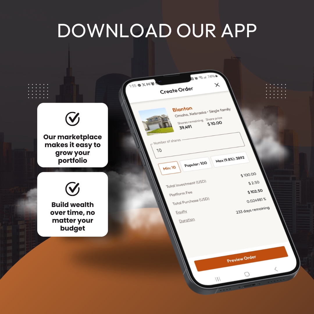 Traditional real estate investing often requires significant capital, making it inaccessible to many. Realbricks changes this dynamic by introducing a fractional investment model. With shares starting at just $10, investing in a diverse range of properties becomes accessibly to many. This democratizes real estate investing, making it more inclusive and attainable for all.