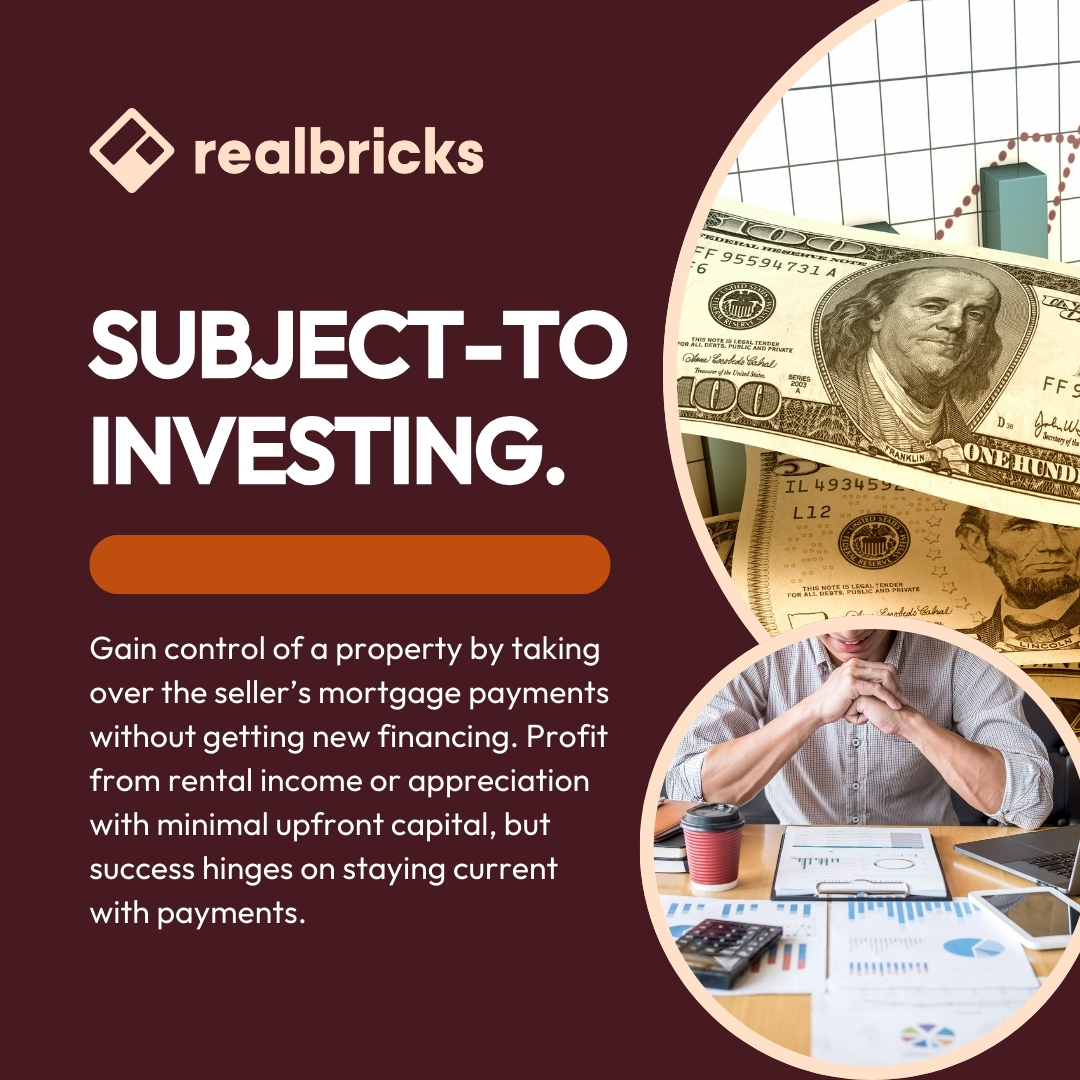 Subject-to investing involves taking over a seller’s existing mortgage payments while gaining control of the property. The investor does not formally assume the mortgage but continues paying the existing loan on behalf of the seller. This strategy allows investors to acquire properties without obtaining new financing, making it a low-capital strategy. Profit comes from rental income or appreciation, and the time commitment is moderate, with the risk being tied to ensuring the mortgage payments are made on time.
