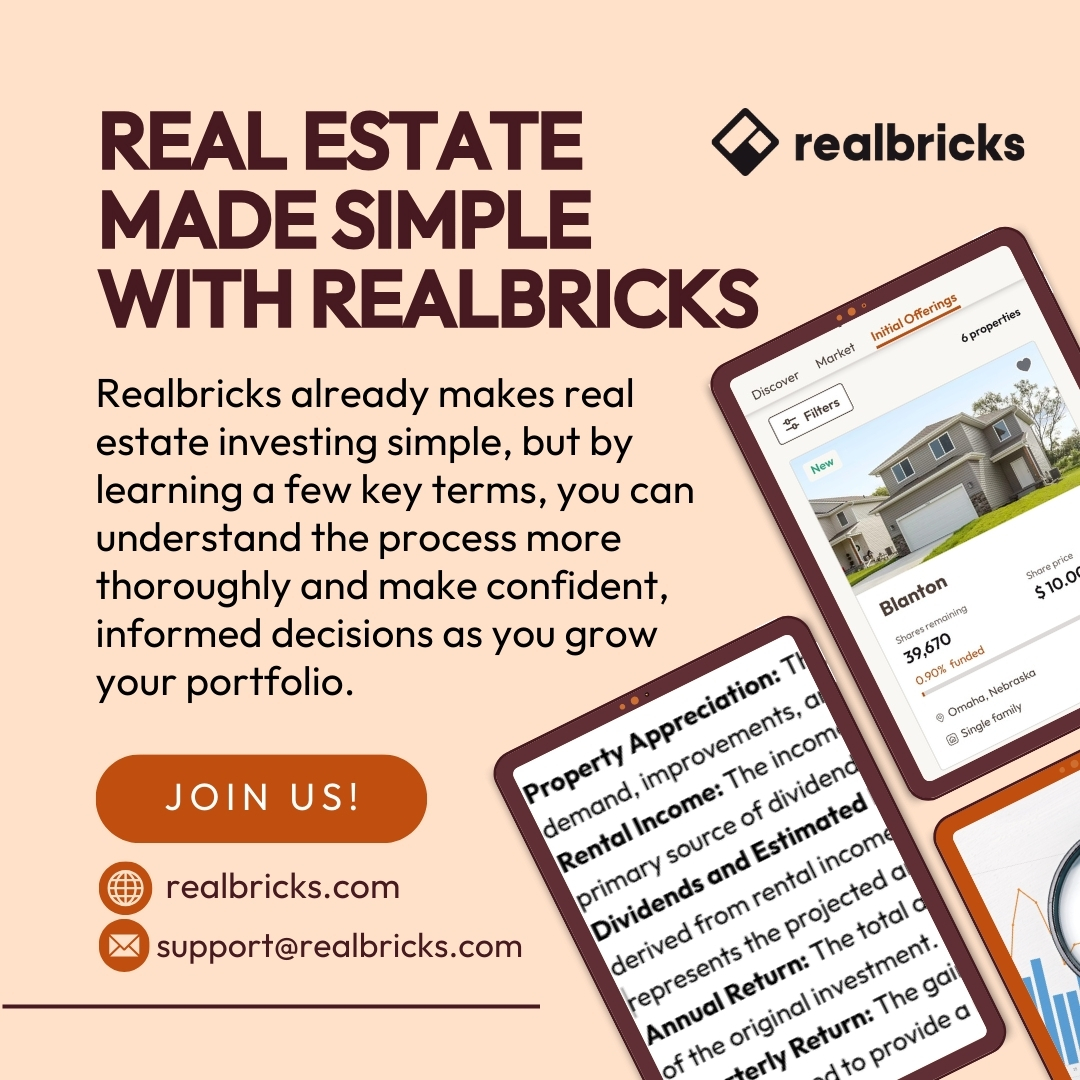 Real estate investing often comes with a steep learning curve. However, Realbricks simplifies the process, allowing investors to focus on key concepts and make informed decisions with confidence. By understanding a handful of essential terms, you can navigate the platform more efficiently and start building your investment portfolio.
